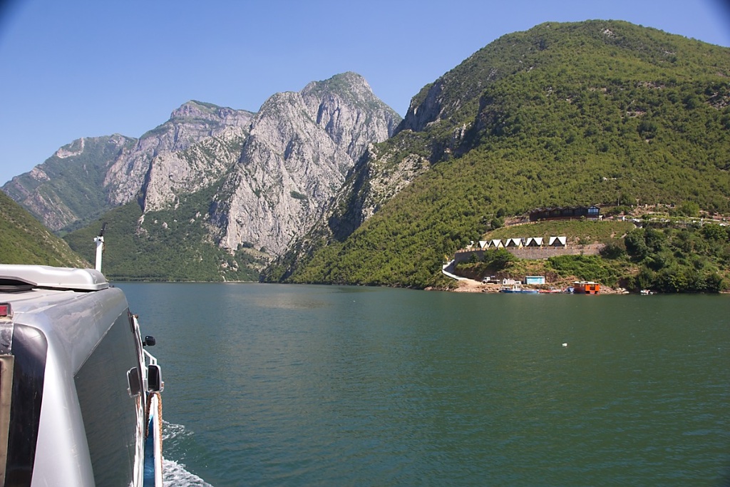Die City bietet dem neugierigen Besucher nicht allzu viel. Soll uns recht sein. Das Eis ist kein Highlight, also zurück auf den inzwischen vollen Shkodra Lake Ressort. Für die nächsten zwei Tage buchen wir eine Tour nach Valbona, mit der Fähre über den Komanstausee.