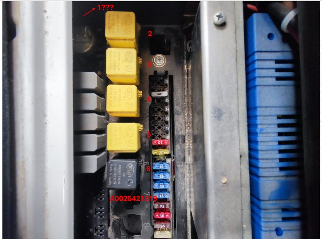 Von Zeit zu Zeit wechselt das Getriebe automatisch von 'Automatik' auf 'Manuell' und ich kann nicht mehr als 3000 U/min erreichen. Nachdem ich den Van gestoppt und den Motor neu gestartet habe, verschwindet das Problem. Zur Information, ich habe kürzlich die Hydraulikpumpe gewechselt, aber das Relais nicht ausgetauscht. Ich habe sorgfältig alle vorherigen Beiträge in diesem Forum zu den Sprintshift-Problemen und möglichen Lösungen gelesen und denke, dass ich auch das Relais wechseln muss, da das Problem wahrscheinlich von einem defekten Relais herrührt. Aber ich habe ein Problem ... Ich kann in meiner Relaisbox nicht identifizieren, welches Relais ich ersetzen soll. Ich habe in anderen Beiträgen gelesen, dass ich das A 002 542 59 19 wechseln muss, aber ich kann es nicht finden.
