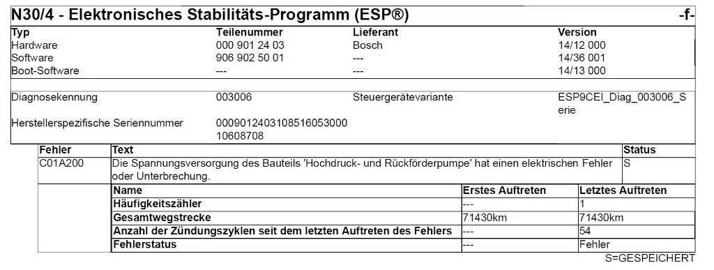1. Fehler N30/4 - Elektronisches Stabilitäts-Programm