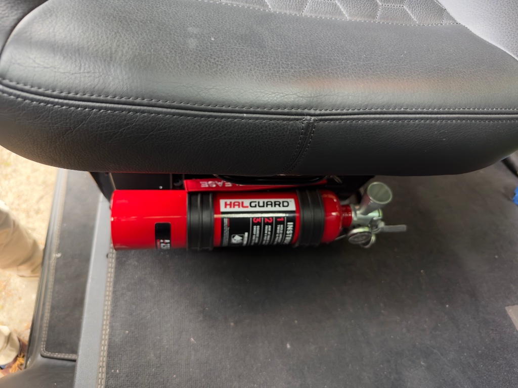 Ich habe meinen Feuerlöscher an der Rückseite des Fahrersitzes angebracht:walkman hat geschrieben: 15 Nov 2025 11:19Meiner ist an der Sitzkonsole Beifahrerseite, allerdings hinten, nicht vorne. Dadurch ist der auch von der Küche aus erreichbar und bei einem Frontalaufprall ist der Sitz zwischen Beifahrerfüßen und Feuerlöscher. Von draußen kommt man auch schnell über die Schiebetür ran.Leaks hat geschrieben: 14 Nov 2025 12:58 Meine Frage an all die erfahrenden Fahrer eines GCS oder ähnlichem Gerät: wo habt Ihr euren Feuerlöscher hingebaut?