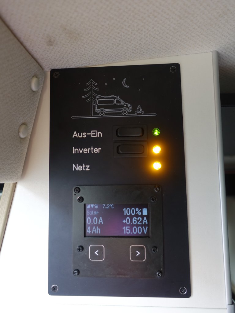 Auch die beiden Votronik-Anzeigen wurden ersetzt durch ein Bluebattery-Diplay mit Shunt und Truma-Anbindung