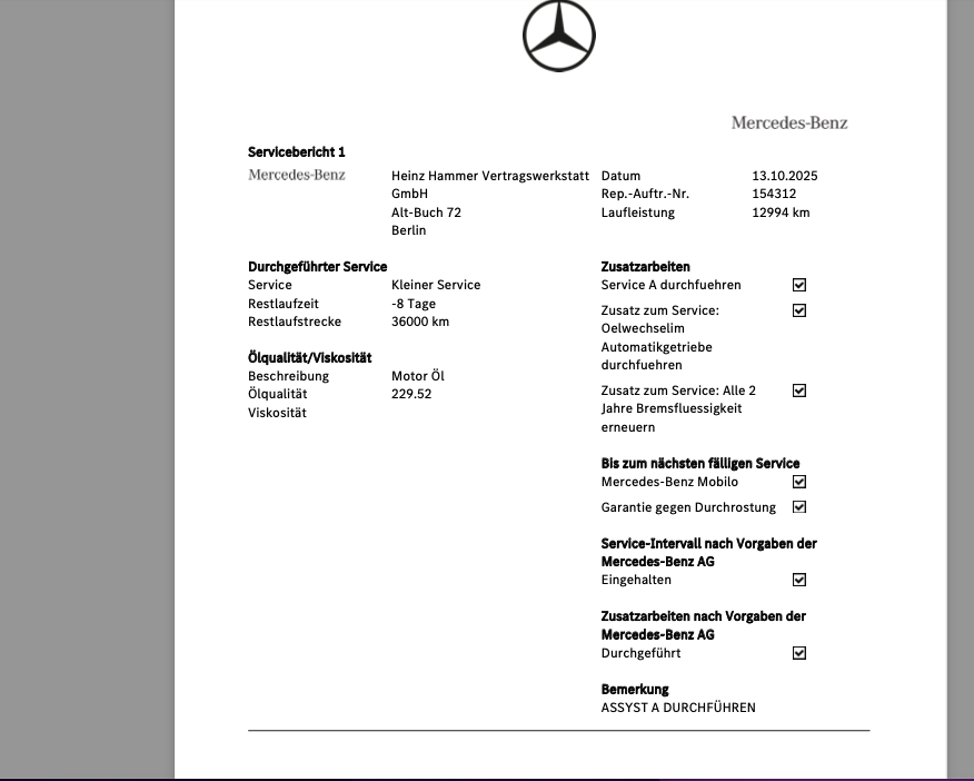 Einer von beiden MB Partnern hat ein falsches Leistungsblatt benutzt? Bei mir ist ein Getriebeölwechsel als mögliche Zusatzleistung nicht aufgeführt.mimi hat geschrieben: 03 Dez 2025 22:15 Ja ich auch, was ist nun richtig ?