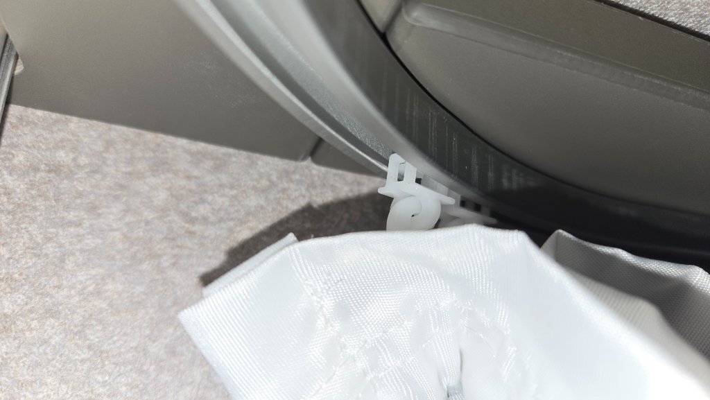 Bei uns sieht das so aus. Das zweite Foto zeigt den einzigen Ort, an dem die Haken rauskommen, den Einfädelungsschienenausschnitt