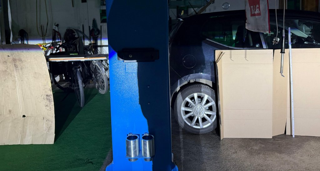 Bevor ich jetzt zum befreundeten WINTEC fahre, will ich beide Scheinwerfergehäuse zumindest Pi mal Daumen justieren.