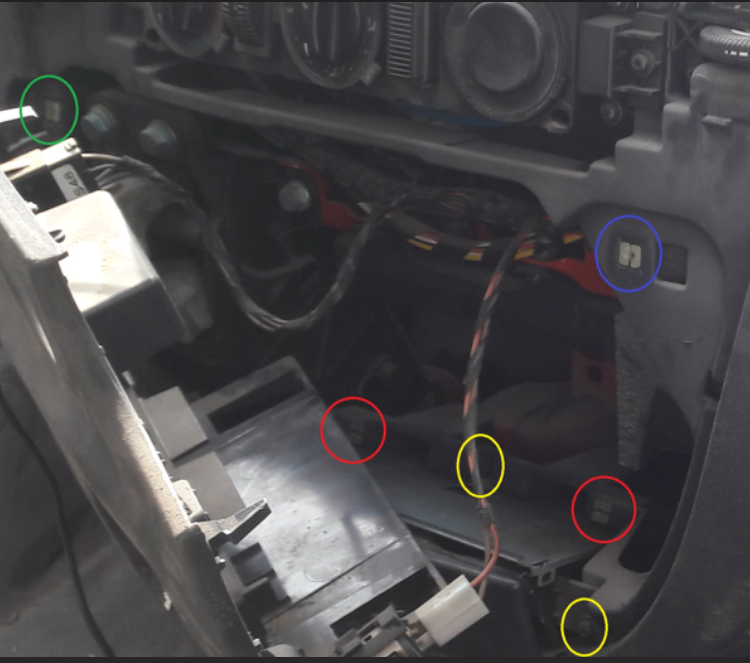 Du schriebst, der Aschenbecher und die Getränkehalterung bzw, die Box seien noch mit 3 Schrauben festgemacht, aber ich sehe keine und weiß nicht wo?