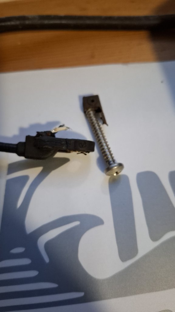 Hier das Kabel mit abgebrochenem Sensor nach der Bergung. Komplett durchbohren sollte man nicht, sonst beschädigt man den Magnetschleifring am Radlager und dann wird es richtig teuer...