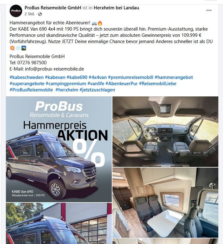 Heute erschienen:Schliedueker hat geschrieben: 30 Jan 2026 10:47 Jetzt ist der erste kurze Globebus 4x4 bei mobile drin. Für schlappe 120k. Angepriesen wird er in diversen Videos aber für roundabout 95k. Sowas ähnliches beobachte ich auch bei dem Pössl XT, dass die mal so eben 15-20k teurer geworden sind in wenigen Wochen.