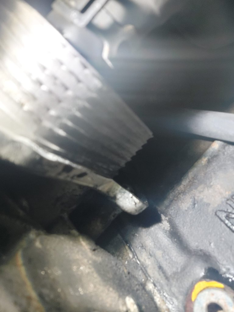 Nicht wundern, auf den Bildern ist der Untergrund am Motorblock natürlich sauber, weil wir das gereinigt haben, um sehen zu können, woher es kommt....
