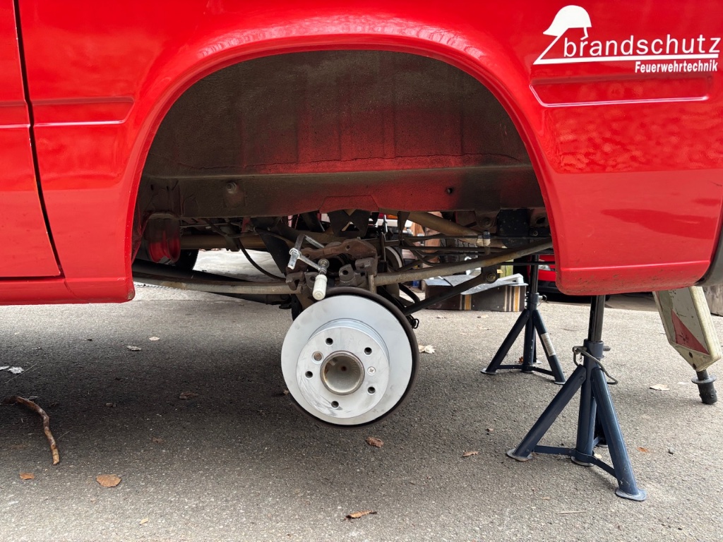 Bei fahrversuchen auf dem eigenen Gelände dann festgestellt, das sich die hinteren Bremsbeläge verabschiedet haben. Die waren vermutlich zu alt und poröse. Also Scheiben und Beläge neu gemacht.