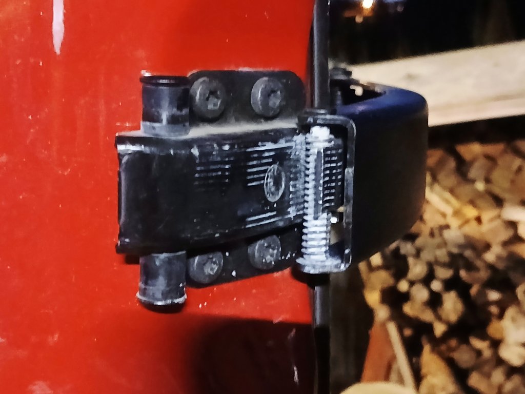 Der Türfeststeller besteht u.a. aus einem Bolzen mit Kunststoffummantelung. Der Bolzen war verbogen, der Kunststoff noch gerade so erkennbar.