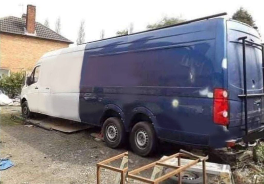 Das ist eine ganz billig/ schlecht gemachte Fotomontage und ja 3achsige Sprinter gibt es reichlich, als Kastenwagen habe ich aber noch keinen gesehen.