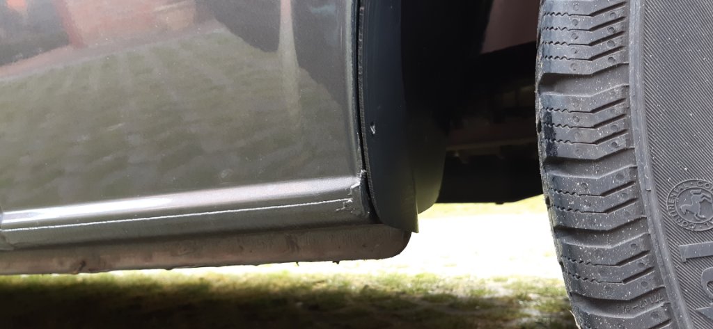 Die Plastikkante sitzt unten bündig am Radlauf.