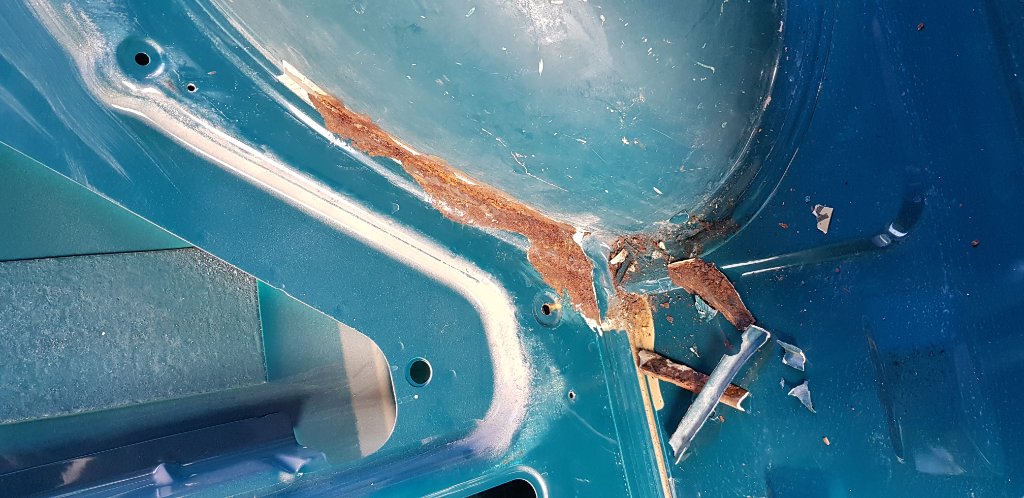 - Stellen von oben im Fahrerraum mit Fertan Rostumwandler tränken (ordentlich in die Nahtstelle kippen) (<-- an dieser Stelle bin ich gerade)