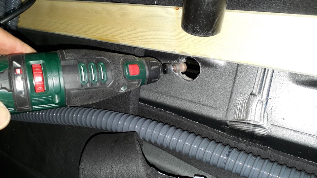Morgen muss dann der Abwasserschlauch da ausgeleitet werden, wenn der Lack getrocknet ist.