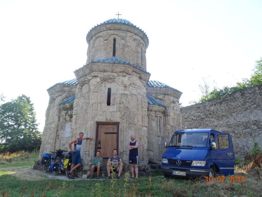 Zweites Bild Mitte: Verlassen der ehemaligen Raubritterburg in Georgien, in dieser wir nächtigten
