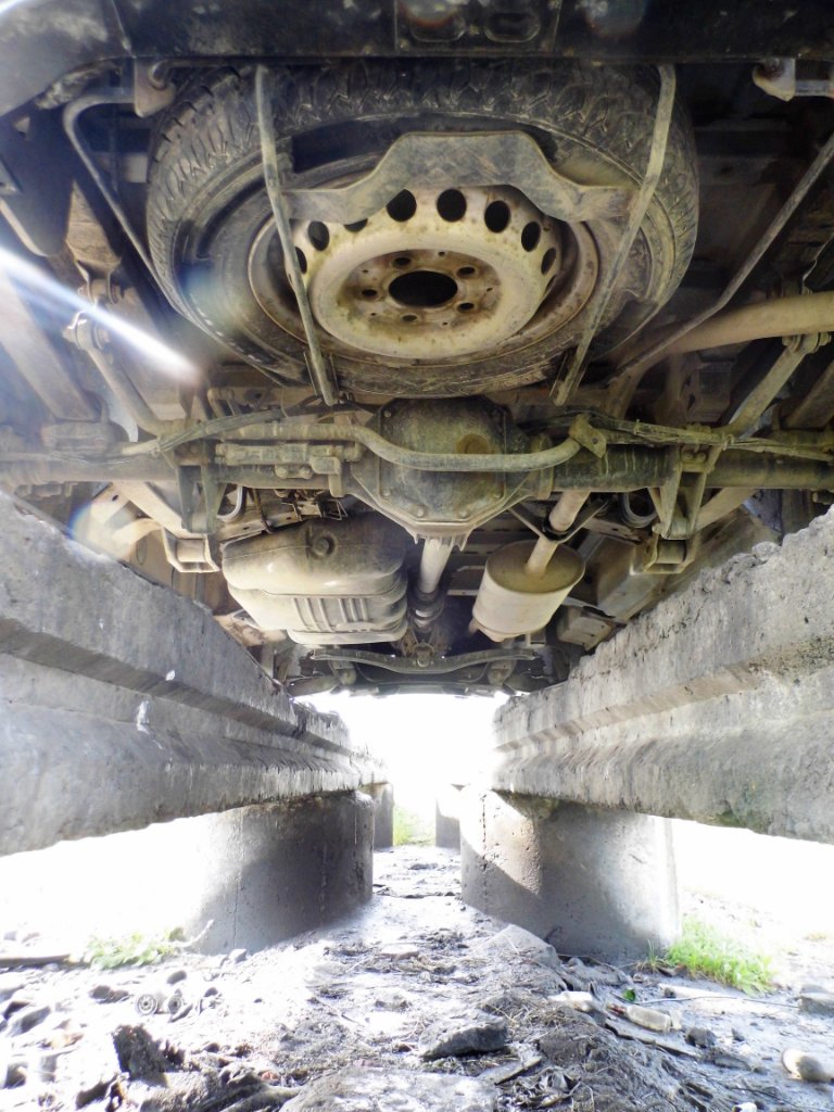 drittes Bild unten: Hier sieht man, daß mein einst am kaspischen Meer gerissenes Stahlseil, dank Knoten, doch noch nützliche Dienste erwieß. Nur mußte ich es bei dem BMW an seiner Stabilisatorstange unterm Wagen anschäkeln, da dieser keine Abschlepp-Schrauböse bei sich hatte. Aber gaaaanz vorsichtig am Seil zupsen und der BMW kam wieder auf alle vier Räder....