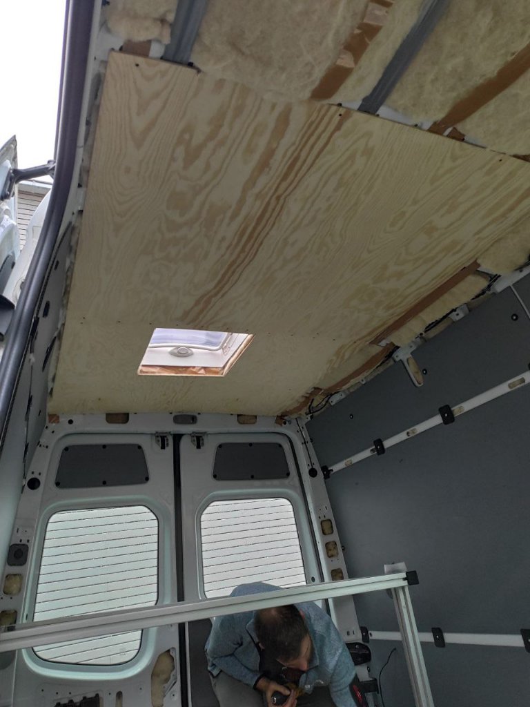 Nach dem Urlaub werden die Wände mit Sperrholz verkleidet und die Decke neu gemacht. Sieht momentan sehr nach "Cargo" aus da es schnell gehen musste und wir die originale Wandverkleidung wieder rein haben