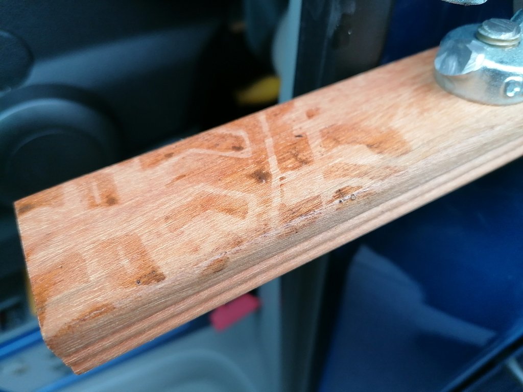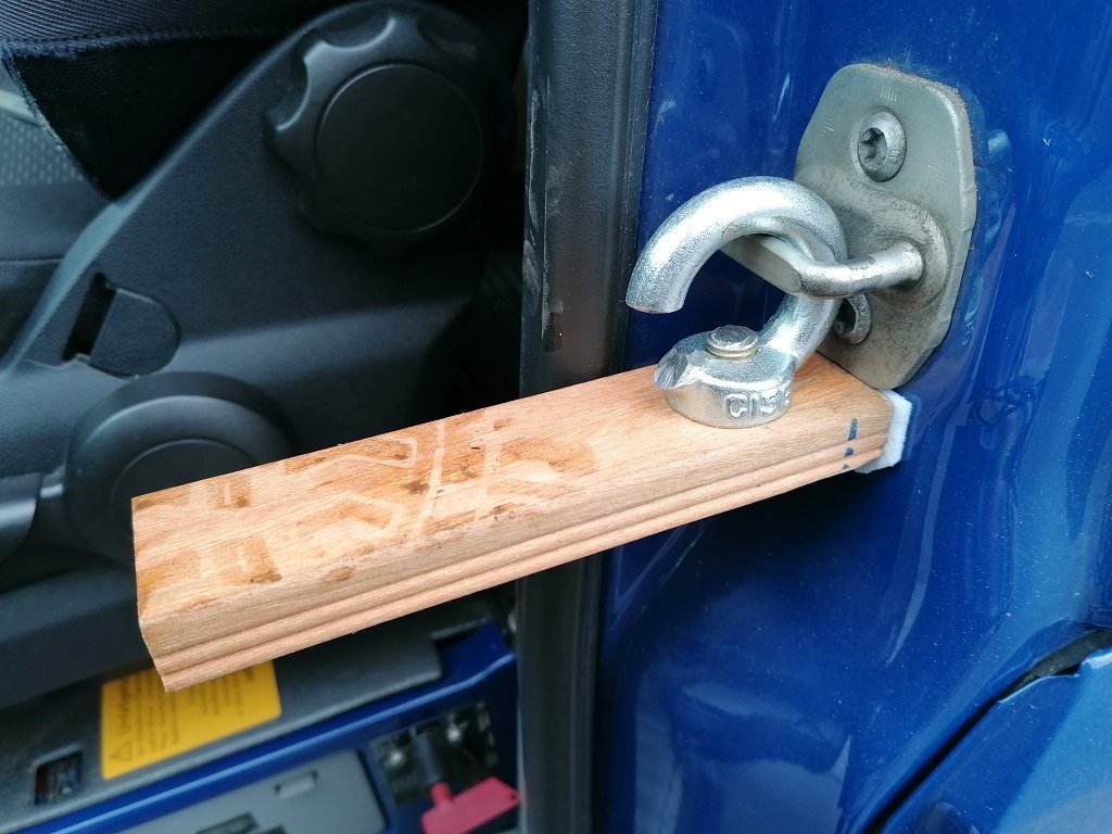 Das Holz ist ein Rest ( Bangkirai Hartholz ) von einer Dachterrasse. Es sollte nur so lang sein wie der Schuh breit ist. Sonst kommt die Hebelwirkung ins schleudern ...