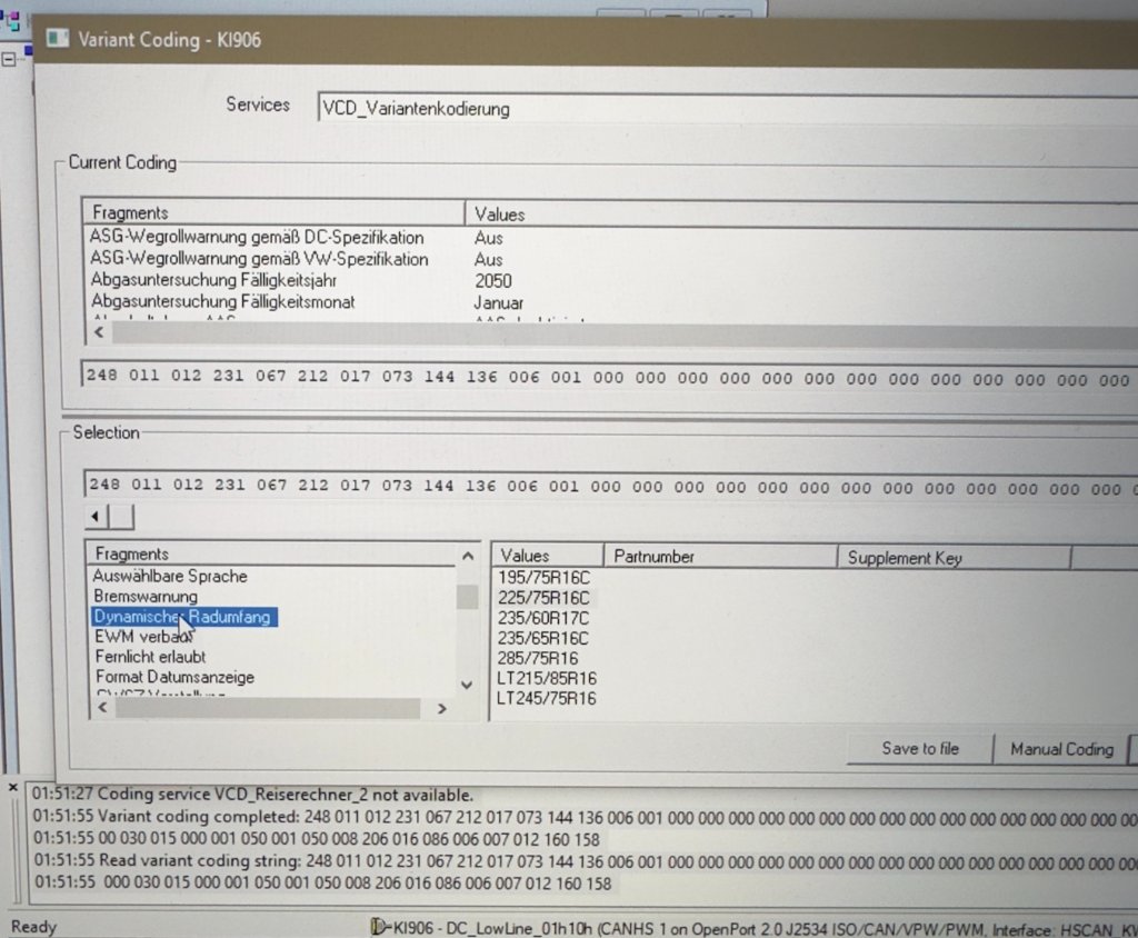 Die Reifengröße wurde per Vediamo an die 225/75 R16 angepasst und stimmt jetzt auf ca. 1-2 km/h.