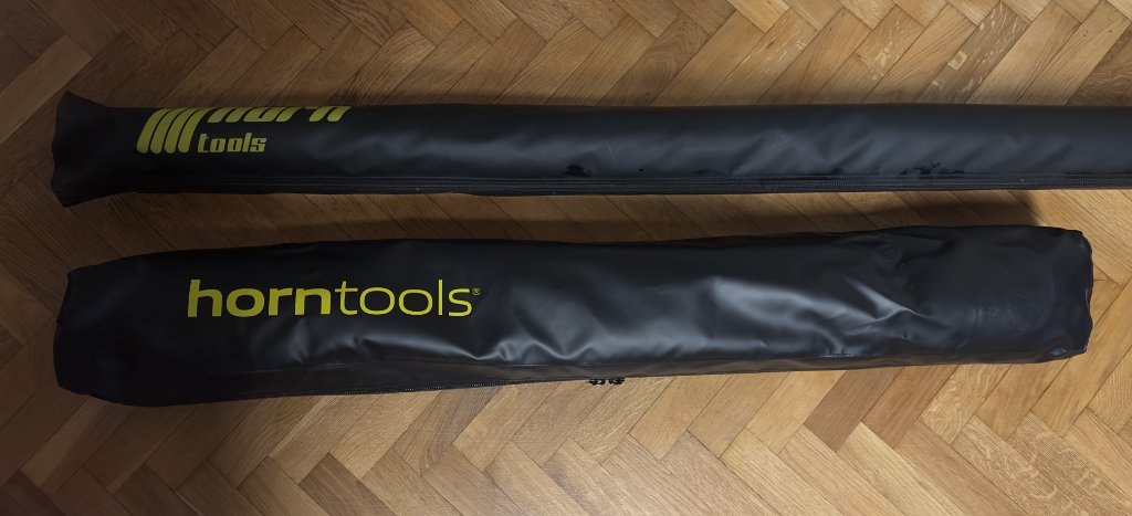 Die Sackmarkise von Horntools wird nicht wie andere in eine Kederschiene eingezogen, sondern hat rückseitig ein Aluminium Profil.