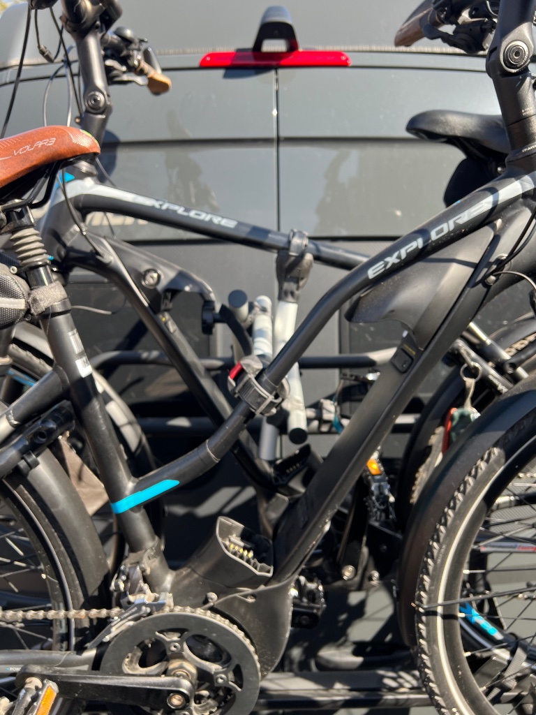 Der kurze Bügel ist so kurz, dass das Fahrrad schräg zum Auto steht und der Lenker oben fast an der Tür anschlägt. Das kann es ja wohl nicht sein.
