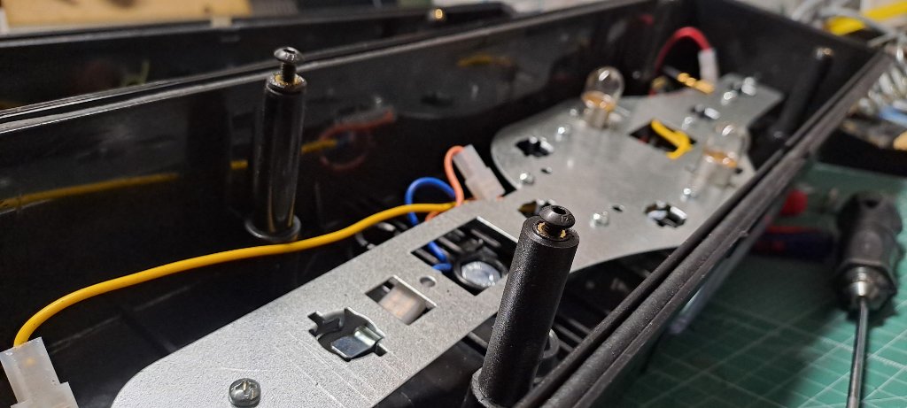 Die Scheinwerfer sind jetzt elektrisch zu verstellen. Die Stellmotoren ragen etwas weiter raus als die Utnerdruckdosen. Dafür werde ich einfach Löcher in die Deckel schneiden und einen "Buckel" aus dem 3D Drucker fallen lassen, den ich dann einfach auf den Deckel kleben werde...