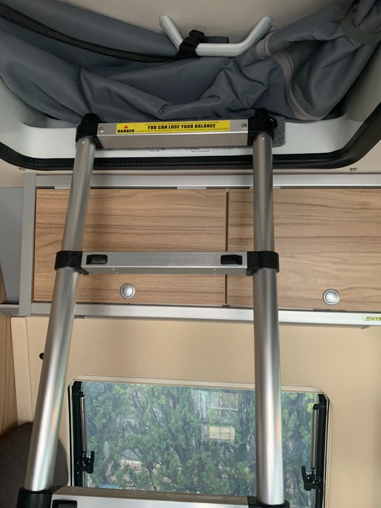 Hat jemand schon einen guten Platz für die zweiteilige Leiter des Aufstelldachs gefunden?