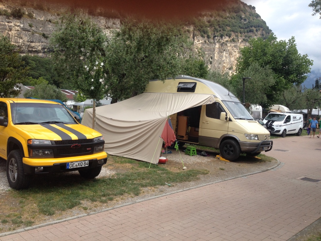 Jetzt leider Zwangspause am Lago Levico, da sich bei Bergauffahrt das Öl vom Automatikgetriebe langsam verabschiedet hat.