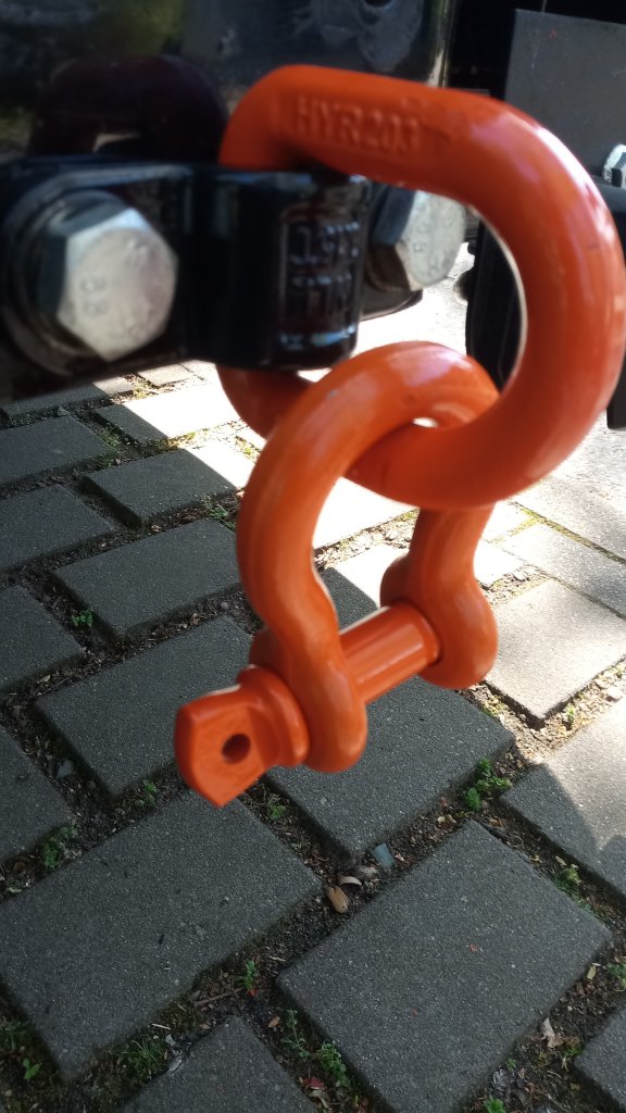 Ich mag nicht ständig mit Kugelkopf an der Anhängerkupplung fahren. Ohne Kugel fehlt mir aber eine saubere Möglichkeit einer Abschleppöse hinten. Daher habe ich mir eine bewegliche Öse mit Halteplatte gegönnt. Das verhindert blaue Flecken durch die Kugel und ist dennoch solide.