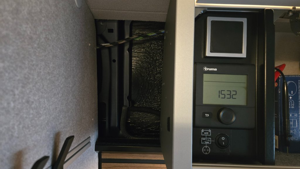den ich gern in die Blinddose über der Truma-Steuerung einbauen würde - hinter der Verkleidung links daneben liegt ja auch ein Kabel, was wohl von hinten kommen müsste: