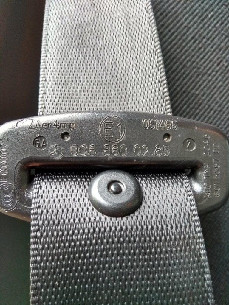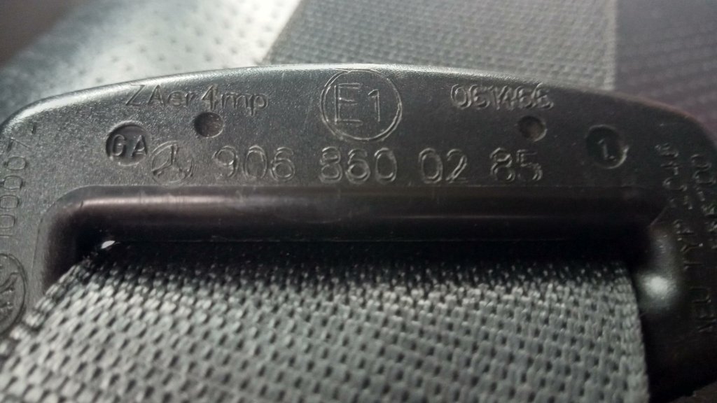 Die Kennzeichnungen des Herstellers (s.o.) auf den Gurten. Bei Interesse nachzulesen in der UN / ECE Regelung Nr. 16., Abs. 5.5 ff