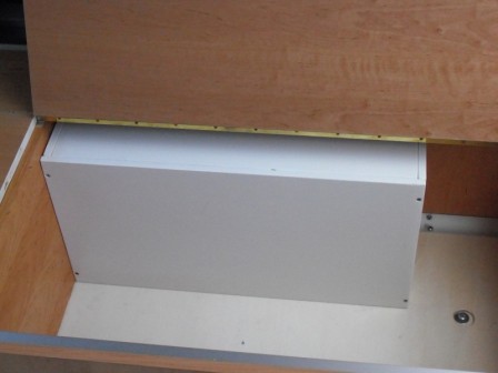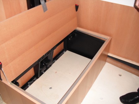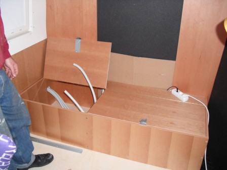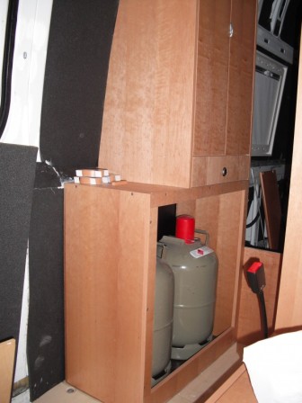 Mittlerweile haben wir auch schon den Kleiderschrank,Gaskasten für 2x 11 Kg Gasfalschen und die Schiebetürverkleidung feritg.
