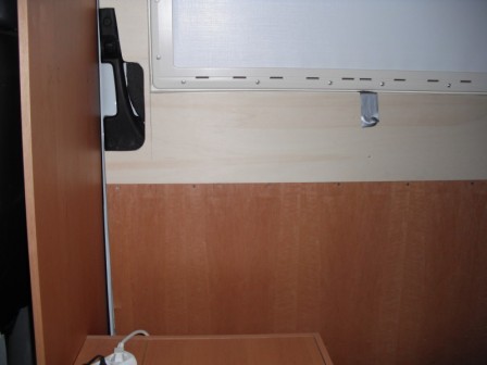 Die Hauptidee des rolos ist das man zwischem dem fahrerhaus und dem "Wohnraum" wirklich blickdichtmachen kann das keiner nachts hineinschauen kann und es nicht zu hell zum schlafen ist, weil die Sitztgruppe Später zu einem Bett umgebaut werden kann.