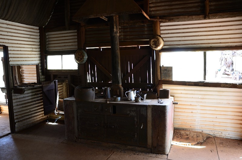 Anschließend bin ich von Dampier schnurstracks nach Süden in den Milstream Chichester NP gefahren. Die Straße führt neben den Gleisen der Eisenerzbahn von Tom Price entlang. Die Erzzüge sind geschätzt mindestens 2 km lang !!! Das dauert knapp 3 MInuten, bis der an einem mit ca. 60 km/h vorbeigefahren ist. Naja, es ist halt alles ein wenig größer in down under. Die Fahrt durch die wirklich schönen Hügel der Chichester Range hat viel Spaß gemacht. Der Milstream Chichester NP hat mich eigentlich ein wenig enttäuscht. Da könnte man mehr draus machen als eine Piste entlang des Tals des Fortescue River (der trotz der Hitze noch Wasser führt und auch viel Fische hat). Ich habe mir noch die ehem. Milstream Homestead angesehen - ist faktisch das Visitor Center - und als ich in der ehem. Küche stand und die fast glühende Hitze des Wellblechs spürte und mir dann noch vorstellte, wie der Küchenofen zusätzlich seine wohlige Wärme verbreitet hat, bin ich mal lieber zum Auto zurück gegangen und hab die Klimaanlage angestellt. Das muss eine wahnsinnig harte Zeit gewesen sein.