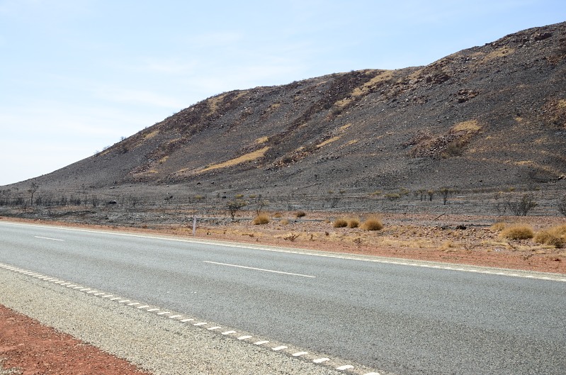 Unterwegs bin ich durch ein riesiges Buschfeuergebiet gefahren. Das ging bestimmt so 20 - 30 Minuten lang. Es roch noch recht frisch verbrannt und unweit des Highway’s qualmte und brannte es auch noch gewaltig.