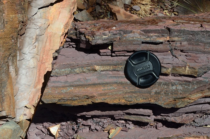 Begonnen habe ich mit der Hammersley Gorge. Um da erstmal hinzukommen sind erstmal 55 km Gravelroad angesagt. Neben der Straße mehrere kreisrunde Felder mit Bewässerungsanlagen….als ob es keine bessere Region für Ackerbau gibt. Wenn ich es richtig erkannt habe, dann ist der Boden auch bereits mit einer ordentlichen Salzschicht bedeckt….naja…viel Spaß in Zukunft mit der „Landwirtschaft“. In der Hammersley Gorge sind wunderschöne gefaltete BIF’s aufgeschlossen. Dazu ein natürlicher Pool des Flusses…das ist ein Pool für einen Geologen…herrlich.
