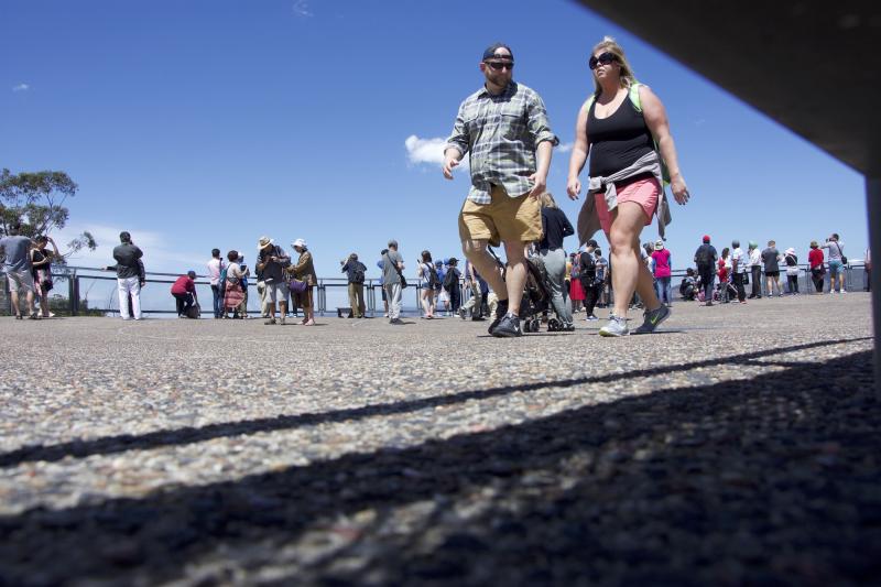 Nach dem Boardwalk war ich bereit mich in die Massen zu stürzen. Also wieder hoch mit der Seilbahn und umgestiegen in die andere Seilbahn rüber übers Tal. Drüben angekommen…nur noch Sprachenwirrwar…und Himmel und Menschen. Naja, was will man machen. Ich bin nur einmal hier…also Augen zu und durch und den ganzen Rummel mitgemacht. Der Weg entlang der Felskante ist regelmäßig mit wirklich tollen Aussichtspunkten versehen. Ich bin den Weg dann bis vor zu den berühmten 3 Schwestern gelaufen.