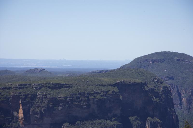 Ich habe mir heute den Grand Canyon der Blue Mountains angesehen. Der ist wahrlich beeindruckend. Sicherlich nicht so wie der in den USA aber da ist ja jetzt eh alles pösepöse… Ich bin mehrere Lookouts angefahren bzw. habe ein paar kleinere Walks zu schönen Stellen unternommen. Vom Anvil Rock aus konnte man sogar die Skyline von Sydney am Horizont erkennen. Das sind laut der Tafel auf dem Felsen immerhin 86 km.