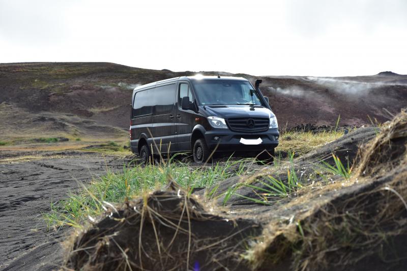 So fahren die Isländer im Hochland. Man vergleiche da mal unsere Sprinterle mit sogenannten Schmalspurreifen