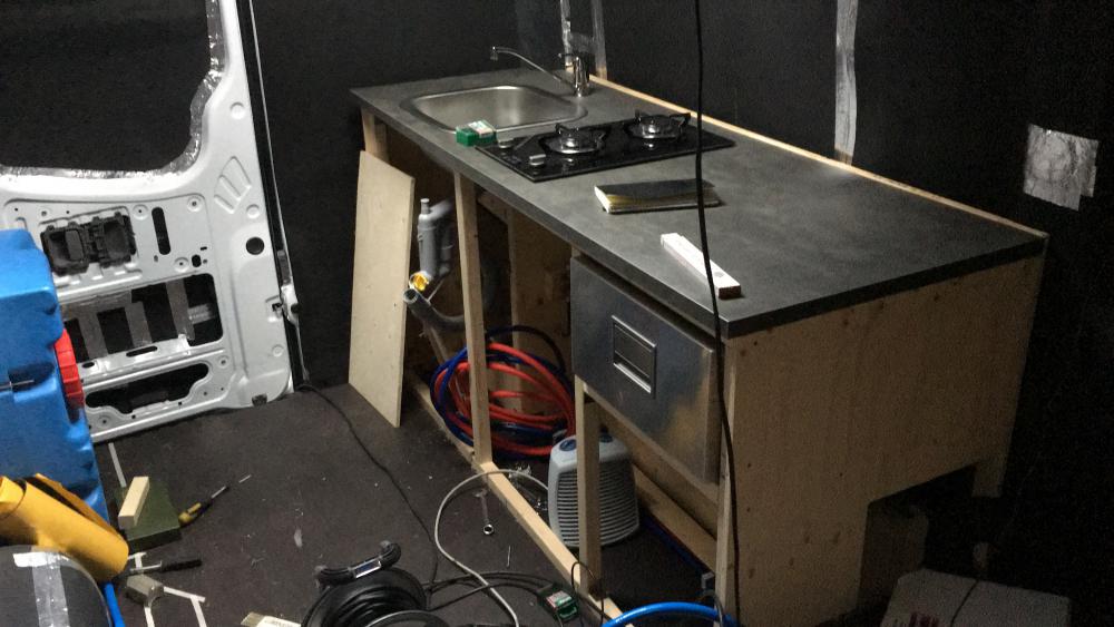 Für die Gasfklaschenbefestigung war mir das Holz alleine nicht ganz stabil genug. Hab dann dahinter noch großflächig ne Aluplatte gebastelt und dann verschraubt.