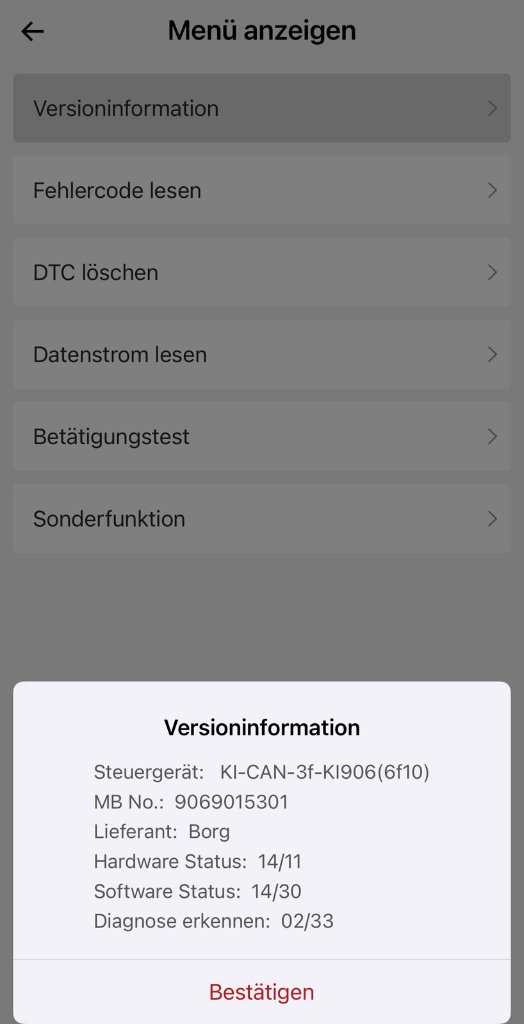 Bisher war ich lediglich in der Diagnose, bin aber jetzt mal in den OBD-Funktionen gewesen, komme aber trotzdem nicht zu diesem Menü.