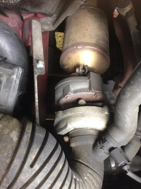 Ich hänge noch einmal 2 Bilder an, einmal vom Verstellmechanismus am Turbo. Wenn das Wärmeschutzblech über dem Turbo abgebaut ist, kann man den Hebel vor der Abgasseite des Turbos sehen. Der Hebel lässt sich gegen einen Federdruck hinunterdrücken. da ander Bild zeigt den Regler an den man durch den ausgebauten rechten Scheinwerfer gut herankommt.