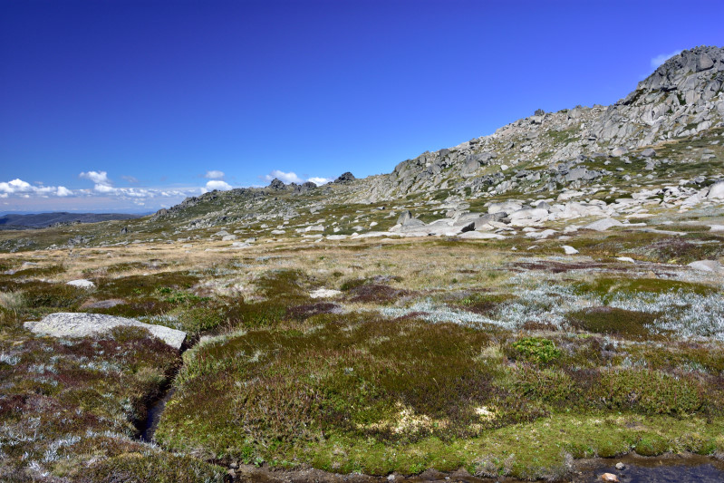 Gestartet bin ich heute früh vom Zeltplatz in Jindabyne (auf dem ich wieder zurückgekehrt bin, um noch eine Nacht hier zu verbringen) und bin nach Thredbo in den Mt. Kosziosko NP gefahren. Eintritt muss man hier mal bezahlen - 17 $ halte ich aber für Fahrzeug und max. 8 Insassen für sehr moderat. Dafür braucht man dann in Thredbo keine Parkgebühren zu bezahlen. Von Thredbo bin ich mit dem Sessellift (35 $)zum Beginn des Weges zum Mt. Kosziosko gefahren. Wer hätte das gedacht, dass ich mal in Australien Sessellift fahre. Irgendwie verbinde ich das nicht mit Australien. Bei der Fahrt hinauf konnte man mit jedem Meter merken, dass es deutlich kühler wurde. Oben auf der Bergstation waren es dann nur noch 10 Grad und es wehte ein starker Wind. Der Weg zum Mt. Kosziosko ist völlig problemlos. Um die alpine Vegetation zu schützen hat man ihn zu 90 % als Laufsteg ausgebaut, was das laufen natürlich sehr vereinfacht. Von der Seilbahnstation bis zum Gipfel sind es 6,5 km und rd. 250 Höhenmeter. Der Weg führt durch eine irgendwie völlig unaustralische Gegend. Nur noch Gras, alpiner Bewuchs und Granitblöcke sind zu sehen. Die letzten Eukalypten hat man bereits geschätzt 50 Höhenmeter unter der Bergstation verlassen. Der Gipfel selbst hat mich dann nach rund 1,75 h Fußmarsch mit wirklich starken Wind empfangen - aber die Fernsicht…einfach nur toll. Das hat sich echt gelohnt.