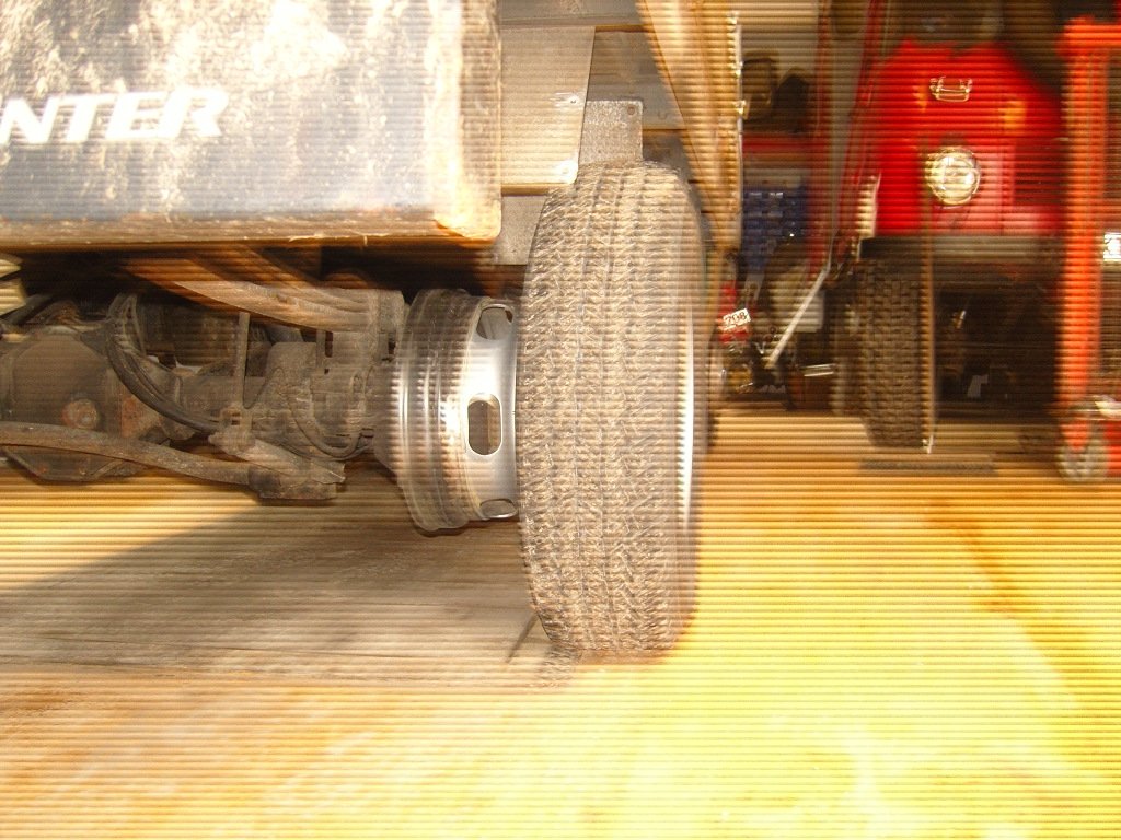 4. schauen ob die Felgen passen...achtung Ivecofelegn haben größere Löcher....daher weiter oben lesen....Felgenringe aus alten Felgen schneiden...brennen flexen....