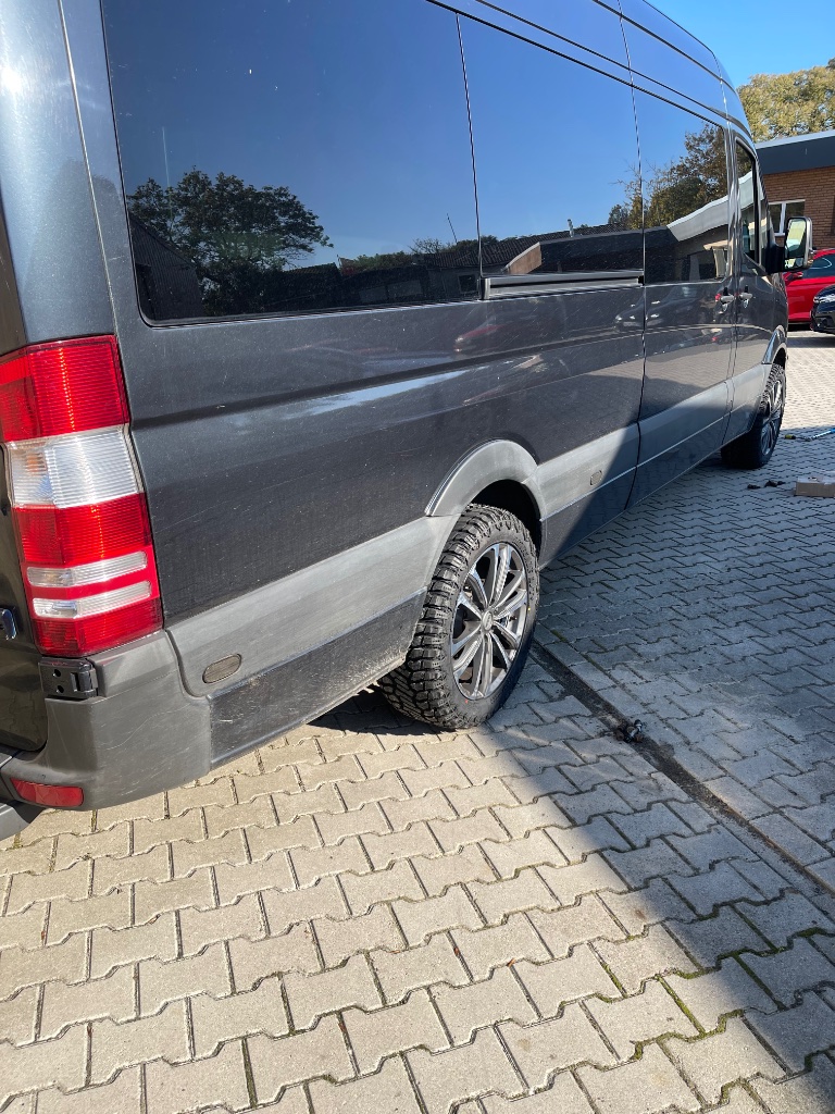 So, die dicken Dinger sind drauf. Dachte das sie weiter rauskommen, aber ich muss vorne noch Spurplatten verbauen damit ich nicht bei vollem Lenkeinschlag gegen den Träger komme.