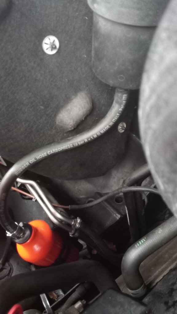 Der blaue Kreis ist natürlich die Entlüftung, die oben am Filter (Eingang) angeschlossen wird. Letztes Bild von Beitrag 81 zeigt schön, wie dafür die Motorabdeckung ausgeschnitten werden muss, damit der Zusammenbau wieder klappt.