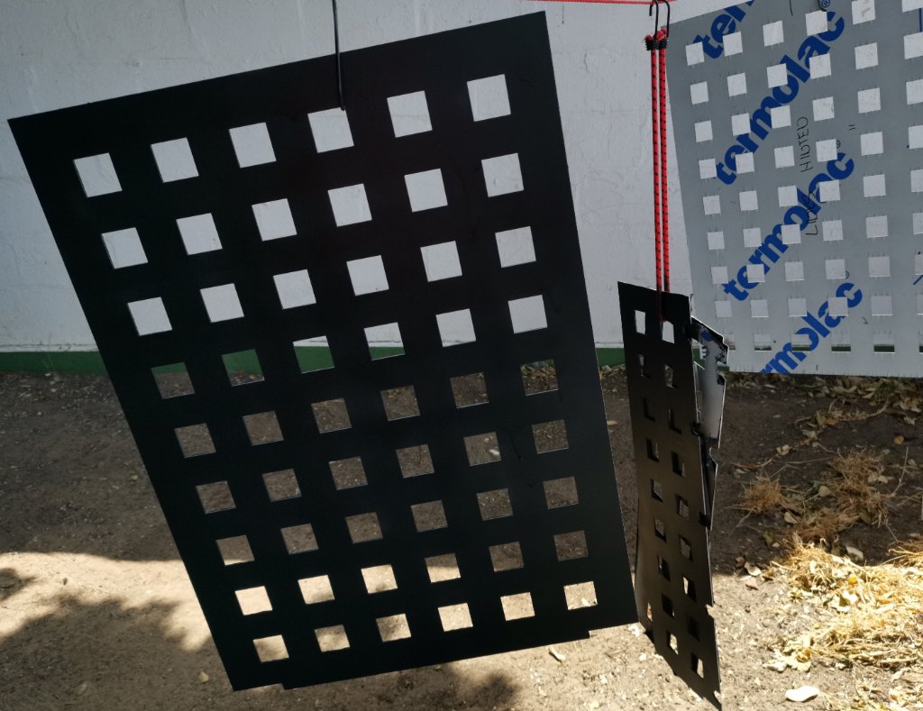 Das Alulochblech 3mm wird vollflächig von hinten auf den Profil Rahmen mit M8 Schrauben alle 20cm verschraubt. Die Schrauben mit Nord Lok gesichert.
