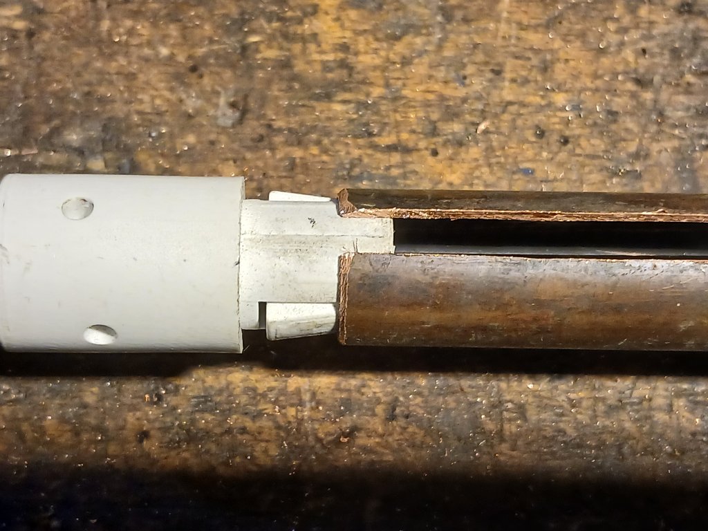 Dann Seil am Handbremshebel ausbauen (Bolzen/Federklammer) und an der Wippe unterm Auto aushängen. Dort 3m stabilen Bindfaden befestigen und Seil komplett nach vorn ins Fahrerhaus ausbauen. Dazu müssen mit einem Werkzeug, dass man sich aus einem 15mm Rohr anfertigt, die zwei Nasen der Bowdenzughülle im Rahmen neben dem Tank von vorn nach hinten zusammengedrückt werden. Ein Ausbau des Seiles ist sonst nicht möglich. Mit gleicher Befestigung ist das Seil am Handbremshebel befestigt.