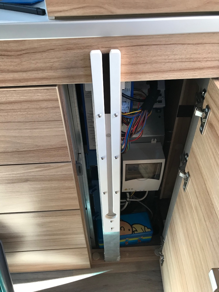 Fleuri hat geschrieben: 19 Mär 2021 21:04 Um die Schiebetür in einer bestimmten Position zu halten, habe ich 2 Edelstahlplatten 10x100x1,5mm auf die Schiene geklebt.Bild[/img]