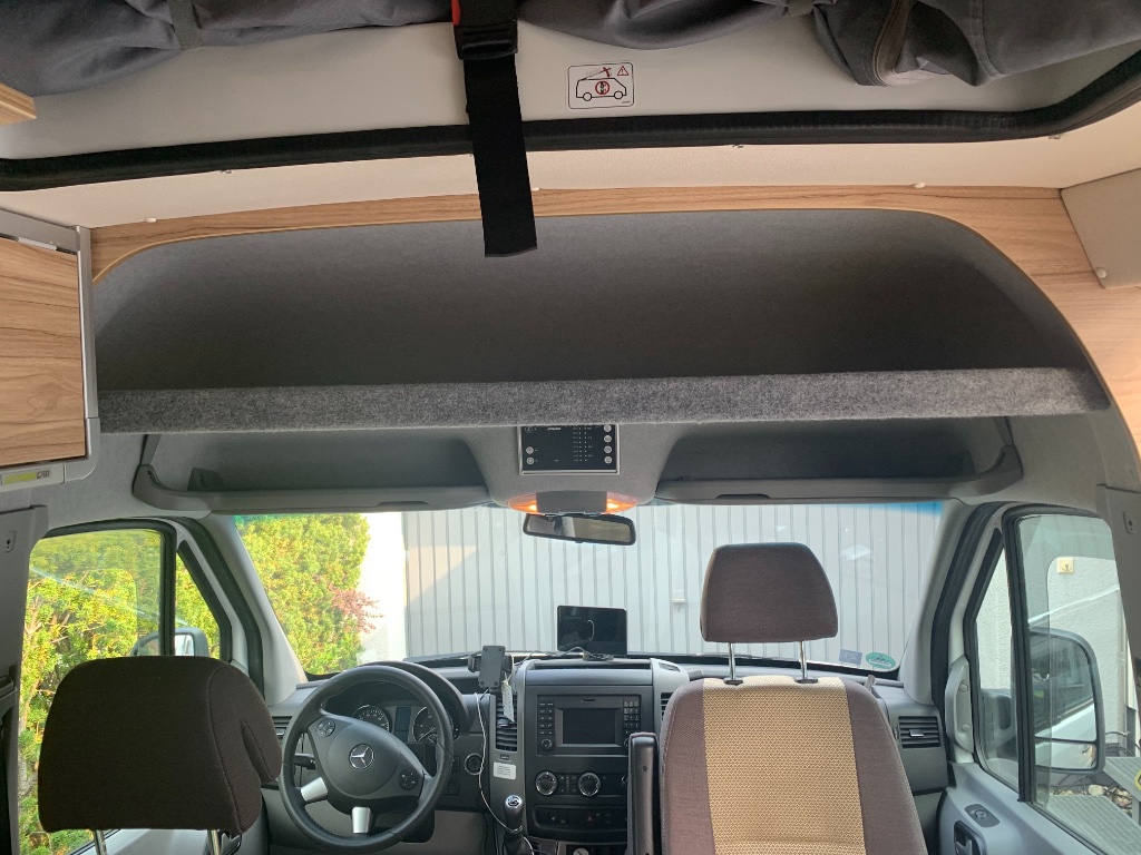 Das zeigt sich schon daran, dass ich in seinem Ducato beim sitzen auf dem Fahrersitz in tiefster Stellung „nix“ aus der Windschutzscheibe sehe und zum Staukasten bei mir nur etwas mehr Luft als eine Handbreit ist.